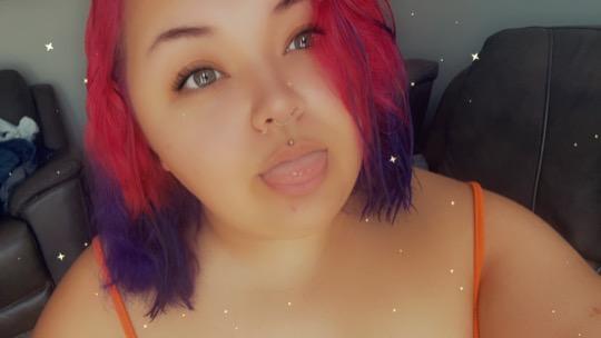 pink and purple hair baddie with lots of tattoos and you cant forget about the spidar web tattooed nipples